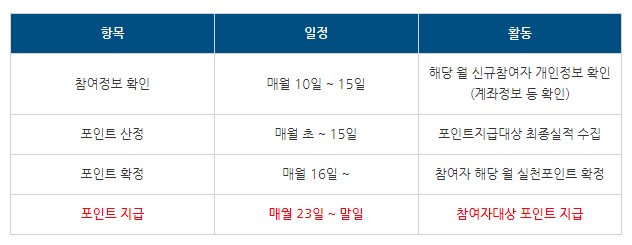 | 일반국민의 탄소중립 생활실천문화 확산을 위하여 다양한 민간기업의 친환경활동을 이용시 이용 실적에 따라 인센티브를 지원하는 제도 |