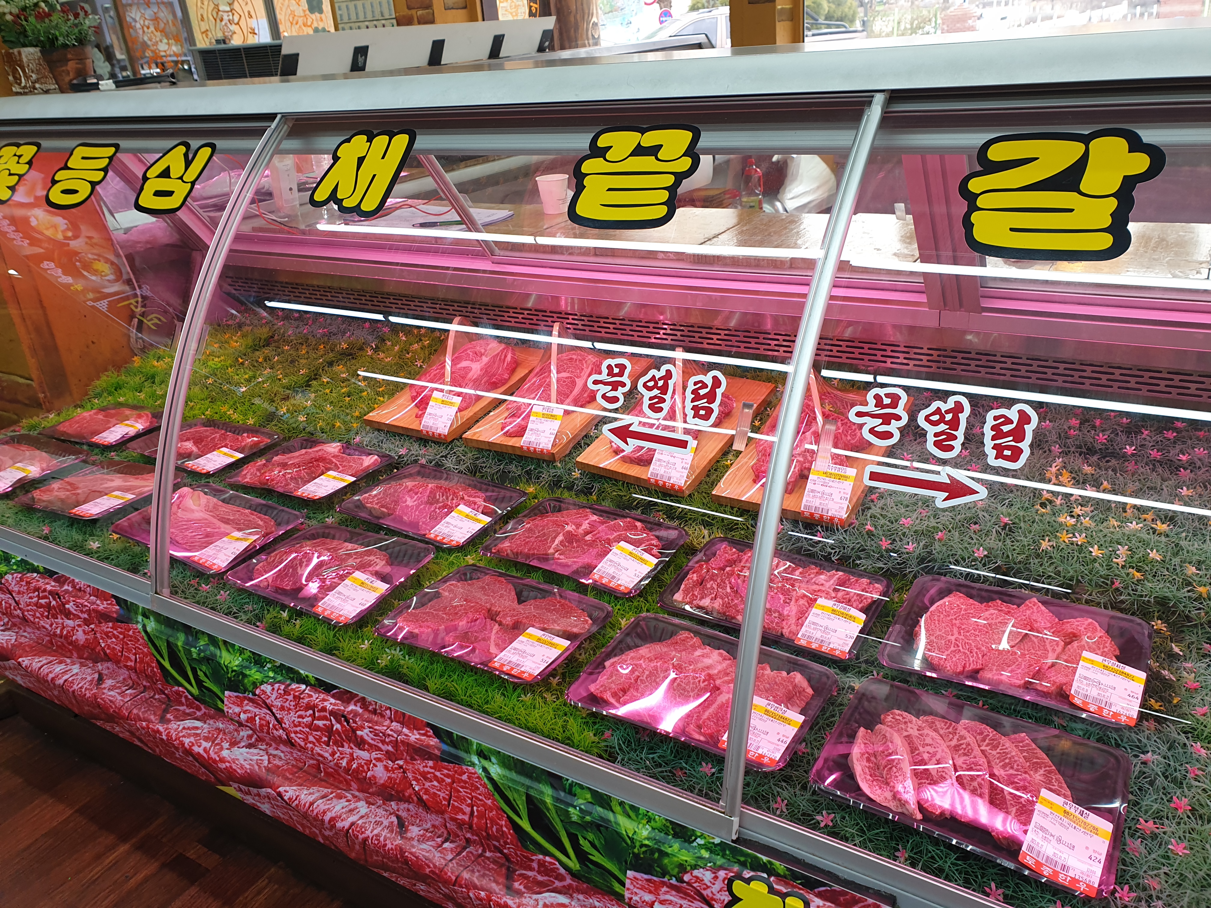 돼지갈비도 팔고 한우정육식당처럼 한우도 팝니다. 한우 가격은 상당한 편이지만 육질도 좋고 신선해 보입니다.