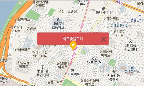 오늘은 강동구청역 맛집 화로숯불구이집을 소개하려고 합니다. 강동구청역 5번 출구 바로 앞에 있으며 24시간 영업하는 곳입니다. 돼지갈비뿐만 아니라 한우도 판매하는데 냉장고에서 직접 골라 구워 먹을 수 있습니다.