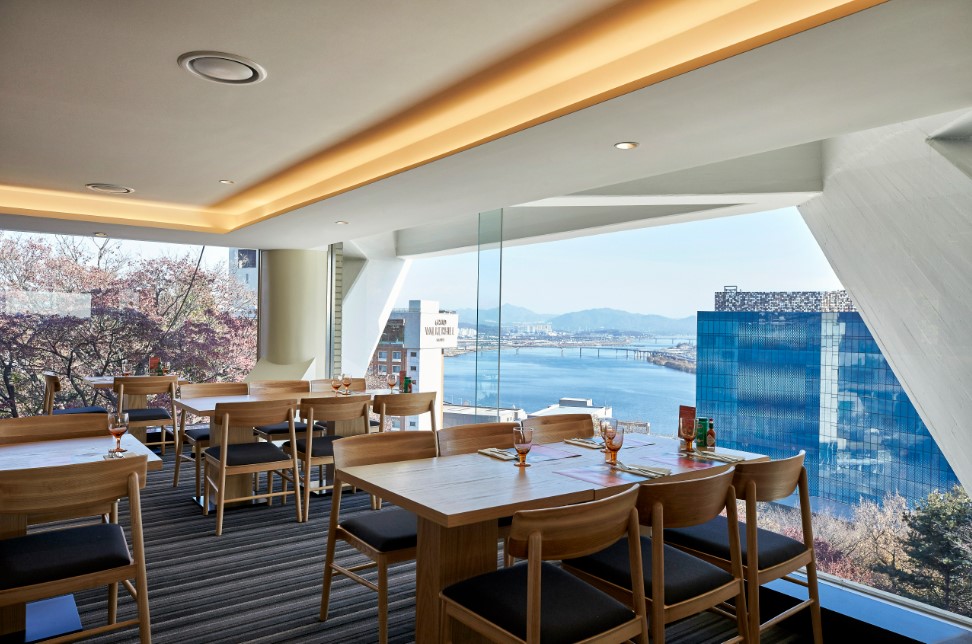 피자힐 앞에서 찍은 전경이다. 맑은 하늘과 한강이 한눈에 내려다 보인다. 이곳은 피자 맛집으로 유명할 뿐만 아니라 어느 계절, 날씨에 가도 감탄이 절로 나오는 뷰 맛집 이기도 하다. 실제로 연인들이나 가족 모임으로 사람들이 많이 찾는다.