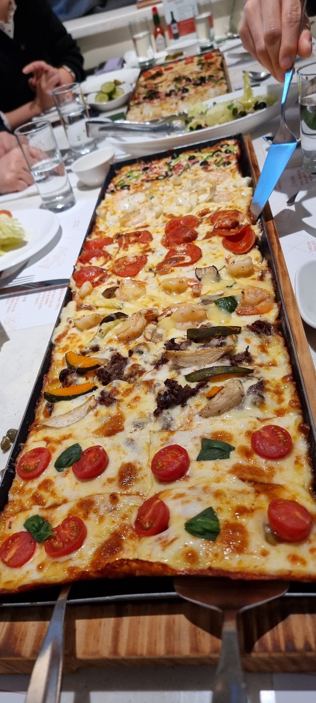 # 연말이면 대기가 길어질 수 있으니 모임시간보다 일찍 도착해야 원하는 시간에 먹을 수 있다. 여러 가지 피자 종류를 먹어봤는데 그중에 원탑은 모둠 해산물 피자였다. 피자의 고소한 맛과 해산물의 깊은 맛이 만나 새로운 미각을 느끼게 해 준다. 가격대가 있는 만큼 재료를 아끼지 않고 넣어 씹는 맛도 좋았다. 오이 피클도 직접 담아서 몇 접시나 리필해서 먹을 정도로 맛이 있다. 다만 아쉬운 점은 피자도 가격대가 있지만 음료수가 정말 비싸다. 그렇지만 연말 분위기를 느끼면서 맛있는 음식을 먹고 싶다면 모임 장소로 피자힐을 강추한다.