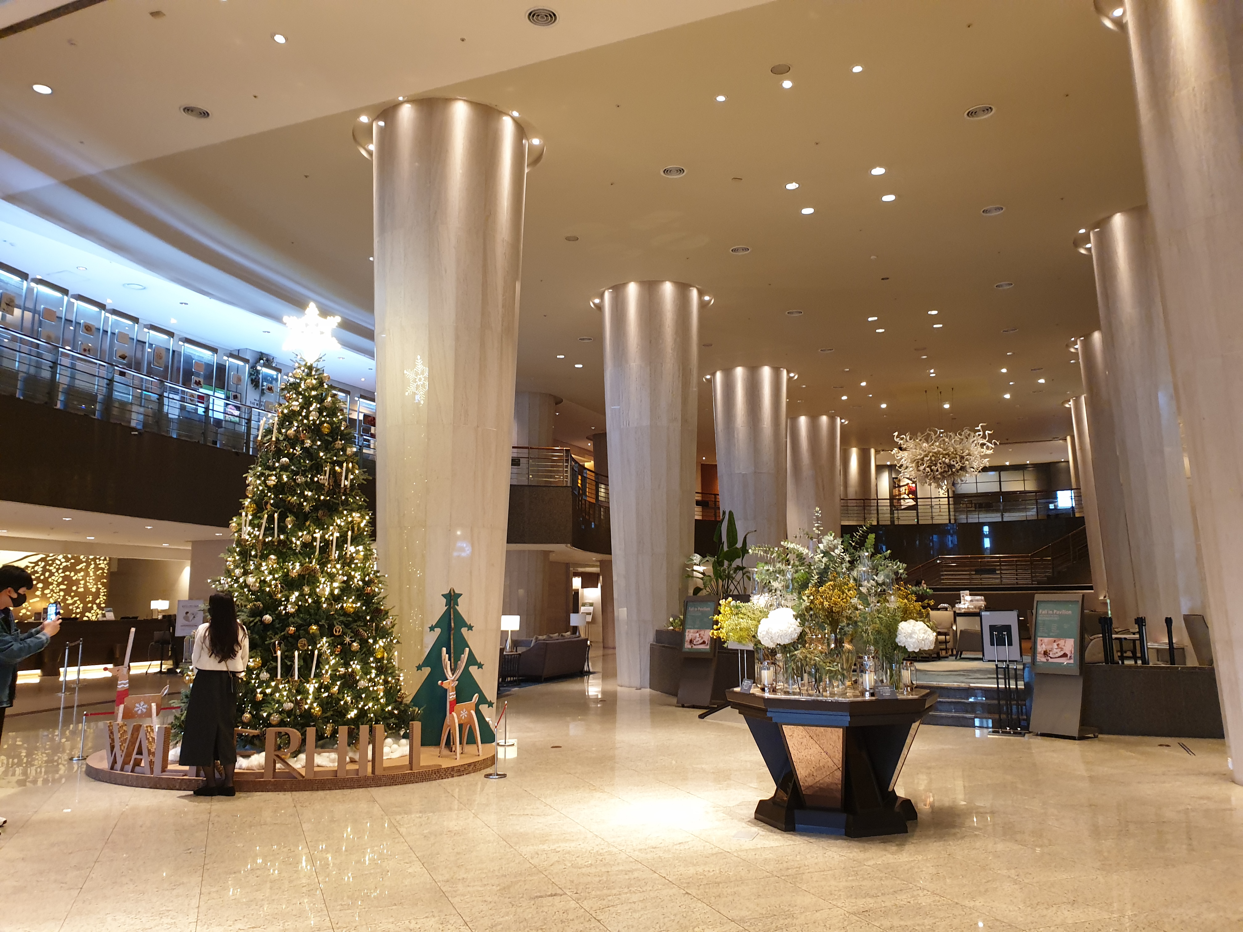 워커힐 로비는 벌써 크리스마스 트리를 장식해놓고 연말을 준비하고 있다. 호텔 로비에 들어서면 고급스러운 향수 냄새가 기분을 좋게 한다. 호텔 로비에 들어서는 순간 평범한 내가 대접받는 사람이 되는 착각이 든다. 이런 것이 마케팅인지 몰라도 설레는 기분이 좋다. 워커힐과 피자힐 건물은 다른 곳에 있지만 이곳까지 왔는데 호텔 로비를 지나칠 수 없어 들러서 사진 한 컷을 찍었다.