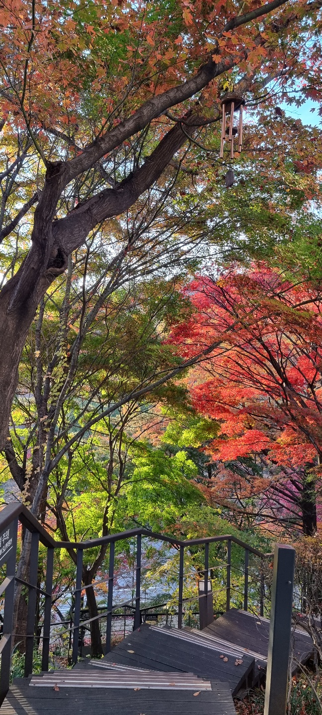 피자힐은 이름에서 느껴지는 것처럼 언덕위에 있다. 피자힐을 가기 위해서는 나무 계단을 올라가야 하는데 늦가을 단풍이 너무 예쁘게 들어 장관을 이뤘다. 바쁜 일정 탓에 여행을 가지 못했는데 감탄을 하면서 단풍구경을 했다. 차를 가져오는 경우에는 주차를 하고 바로 계단을 올라가면 된다.
