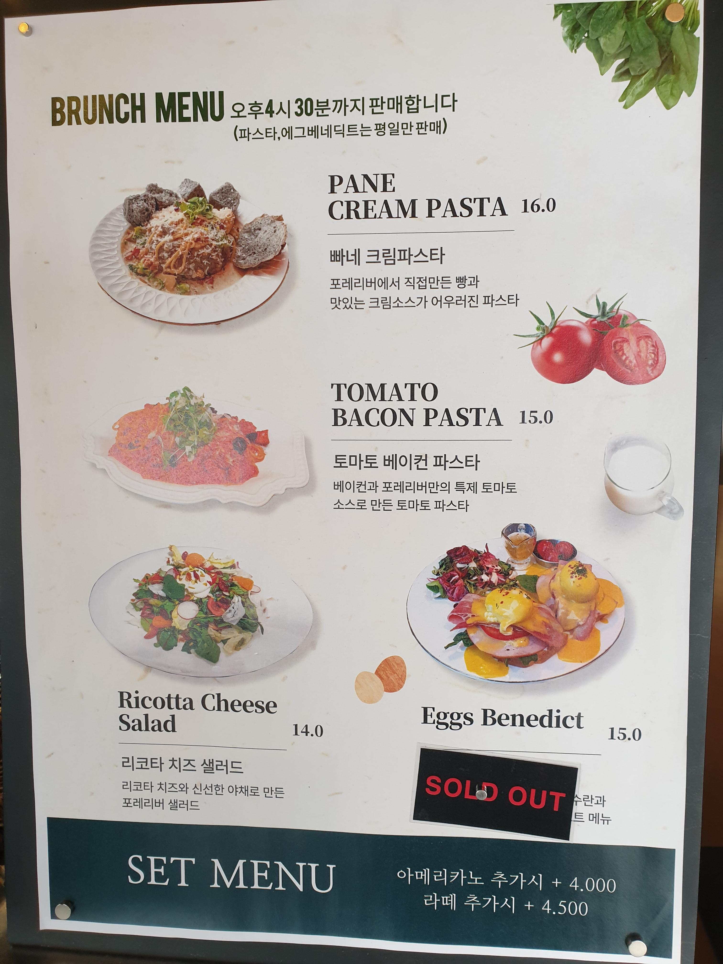 아메리카노가 50,000원, 카페라테가 60,000원 수준입니다. 요즘 커피값이 워낙 많이 올라 싼 편은 아니지만 비싼 편도 아닌 것 같습니다. 다양한 브런치들이 준비되어 있는데 이때 아메리카노는 4,000원, 카페라테는 4,500원으로 할인해서 먹을 수 있습니다. 브런치로 즐기시는 것이 가성비가 있어 보입니다.