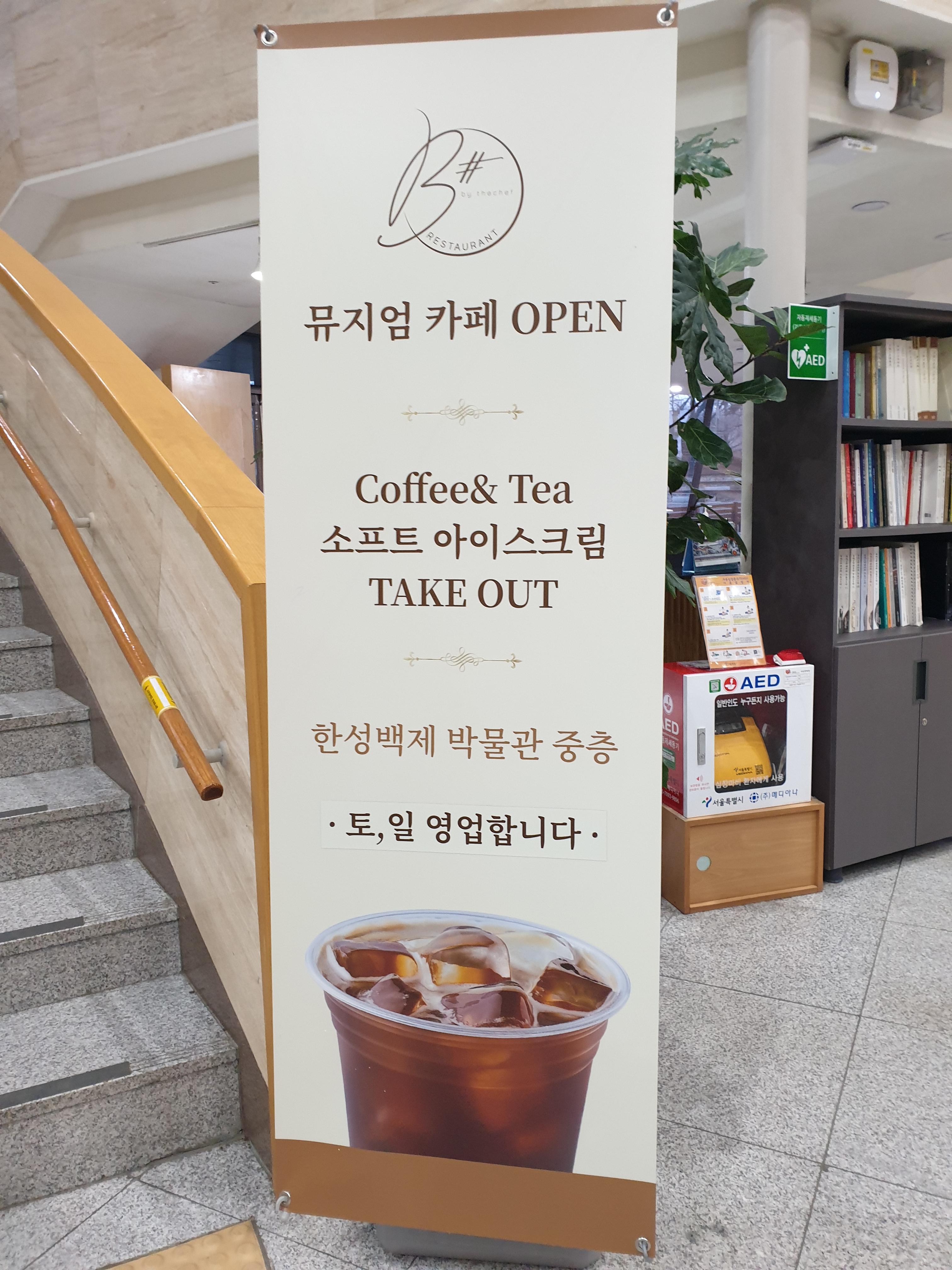 한성백제박물관 2층에서 운영하는 뮤지엄 카페는 토, 일에만 영업합니다.