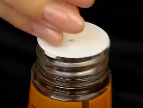 소스를 적당량 사용하고 싶을 때는 소스 마개에 있는 종이캡을 다 뜯지 말고 이쑤시개를 사용해서 필요한 만큼 구멍을 내줍니다. 구멍을 3~5개 정도 내고 소스를 뿌리면 원하는 양만큼 소스를 사용할 수 있습니다.