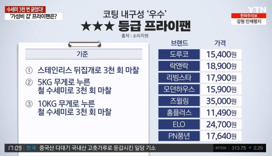 '가성비 갑' 프라이팬은? -가격·인지도와 무관(YTN기사)-