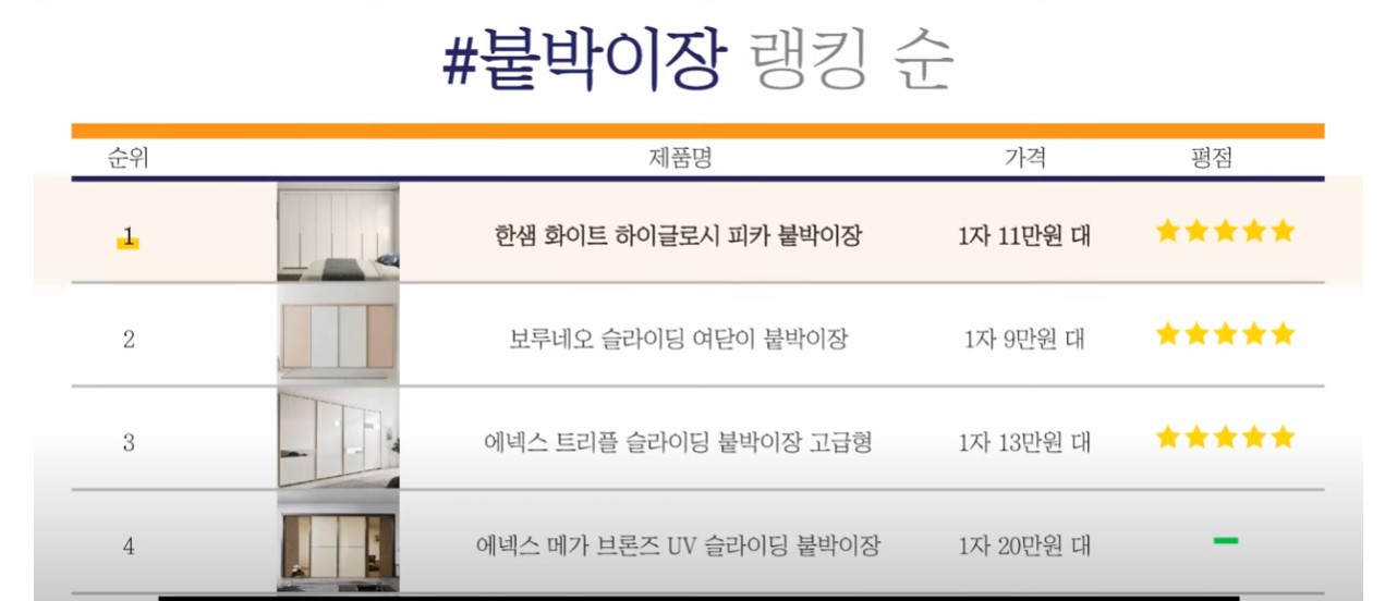 ▶ 붙박이장 랭킹 순(2023년 기준)
