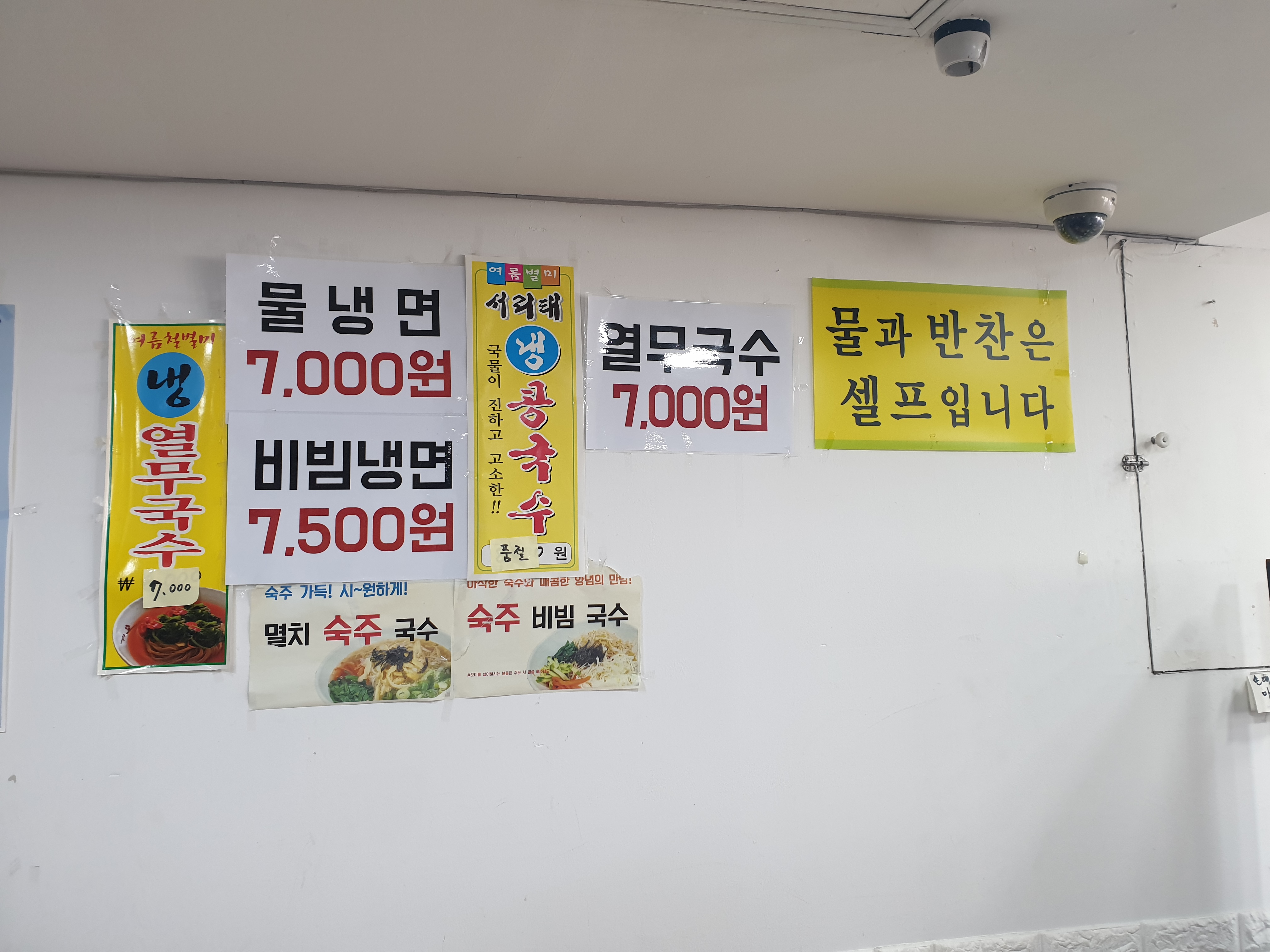 물냉면, 열무국수, 비밈냉면이 7,000~7,500원입니다. 4명이 식사를 하면 30,000 정도면 실컷 먹을 수 있습니다. 요즘 웬만한 스파게티도 20,000대인데 친구들과 같이 와서 기분좋게 한턱 쏠 수 있는 곳입니다. 이 집 김치가 맛있으니 열무국수도 맛있을 것 같네요.