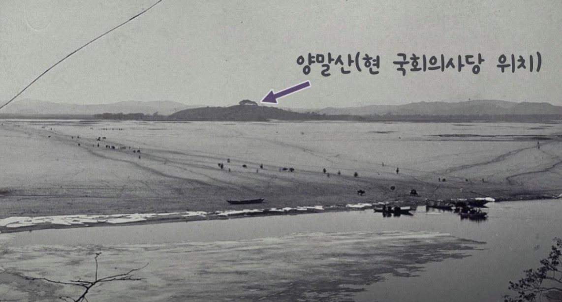 현 마포에서 본 여의도의 모습이라고 합니다. 마포나루라는 말이 실감납니다. 나룻배를 타고 여의도에 갔어야 했네요. 여의도 국회의사당이 있던 자리는 뻘밭인 것 같습니다. 천지가 개벽했다는 말이 어울립니다.