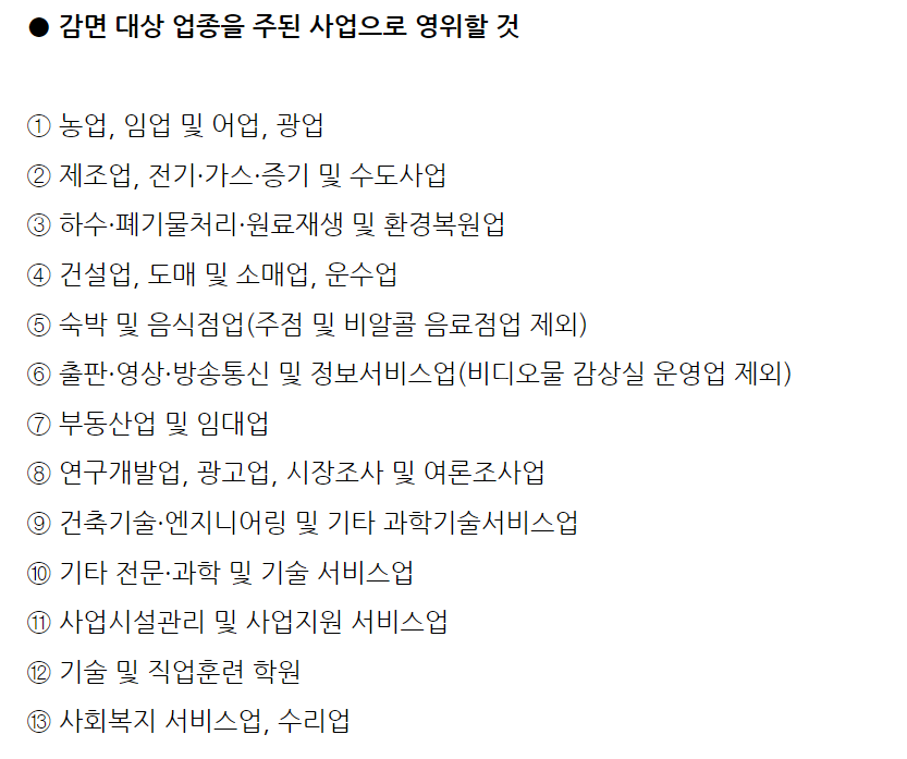 ▶보험 관련 또는 전문서비스업 공공기관 및 지방공기업, 보건업 등은 감면 대상에서 제외