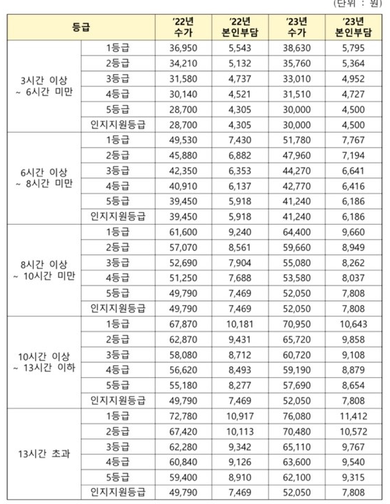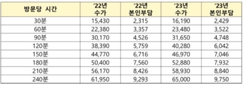 2023년 방문요양 이용요금은 30분 기준 22년 2,315원에서 23년 2,429로 인상되었습니다.