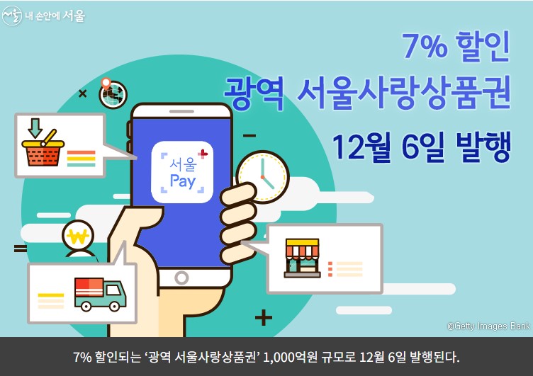 서울시가 25개 자치구 어디서나 사용 가능한 '광역 서울사랑 상품권'을 12월 6일 오전 10시부터 7% 할인된 금액으로 1,000억 원 규모로 발행합니다.