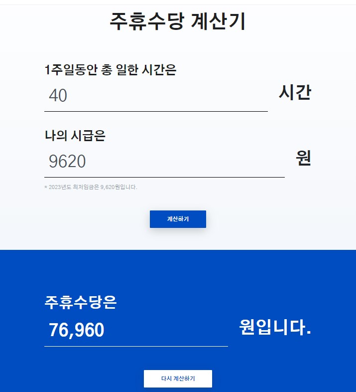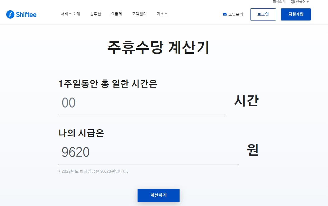 네이버 검색창에 '알바주휴수당계산기'라고 검색하면 '주휴수당계산기'가 나옵니다. 이곳에 1주일 일한 시간, 시급을 넣고 계산하기를 누르면 받아야 하는 주휴수당 금액이 계산됩니다.