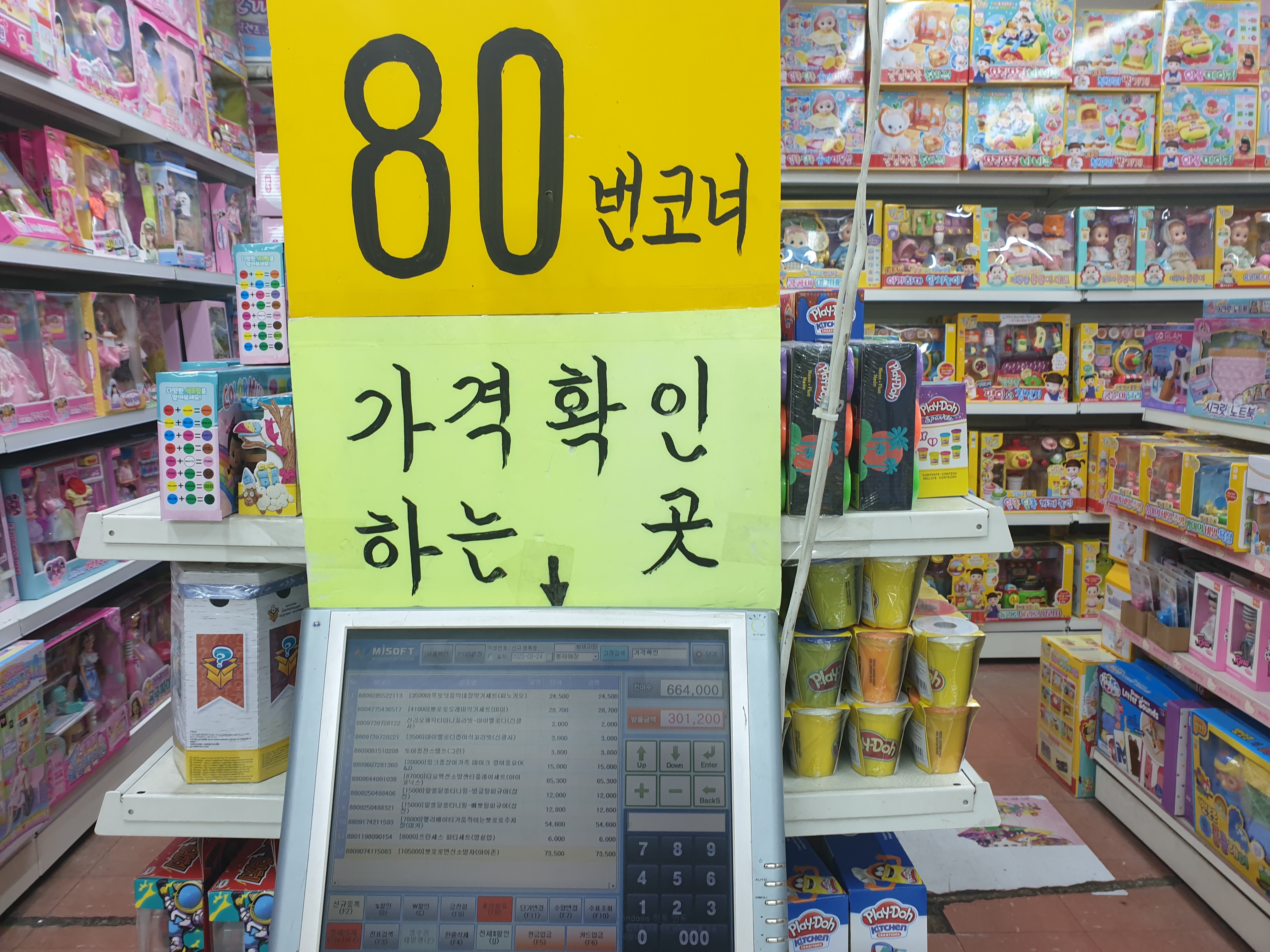장난감이 많다 보니 가격은 서점처럼 컴퓨터로 확인해야 합니다. 아이들과 장난감을 사러 가서 한두 개 담다 보면 예산을 초과하는 경우가 많은데 가격을 확인하고 구매하면 합리적인 소비가 될 것 같습니다.
