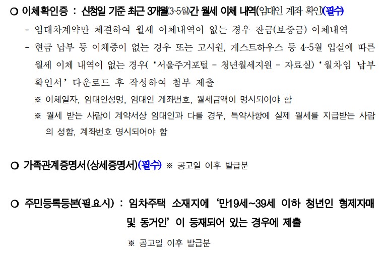 예시: 차임(월세) 10만 원은 월 10만 원 지원/ 관리비가 포함된 경우 관리비 제외하고 월세만 지급