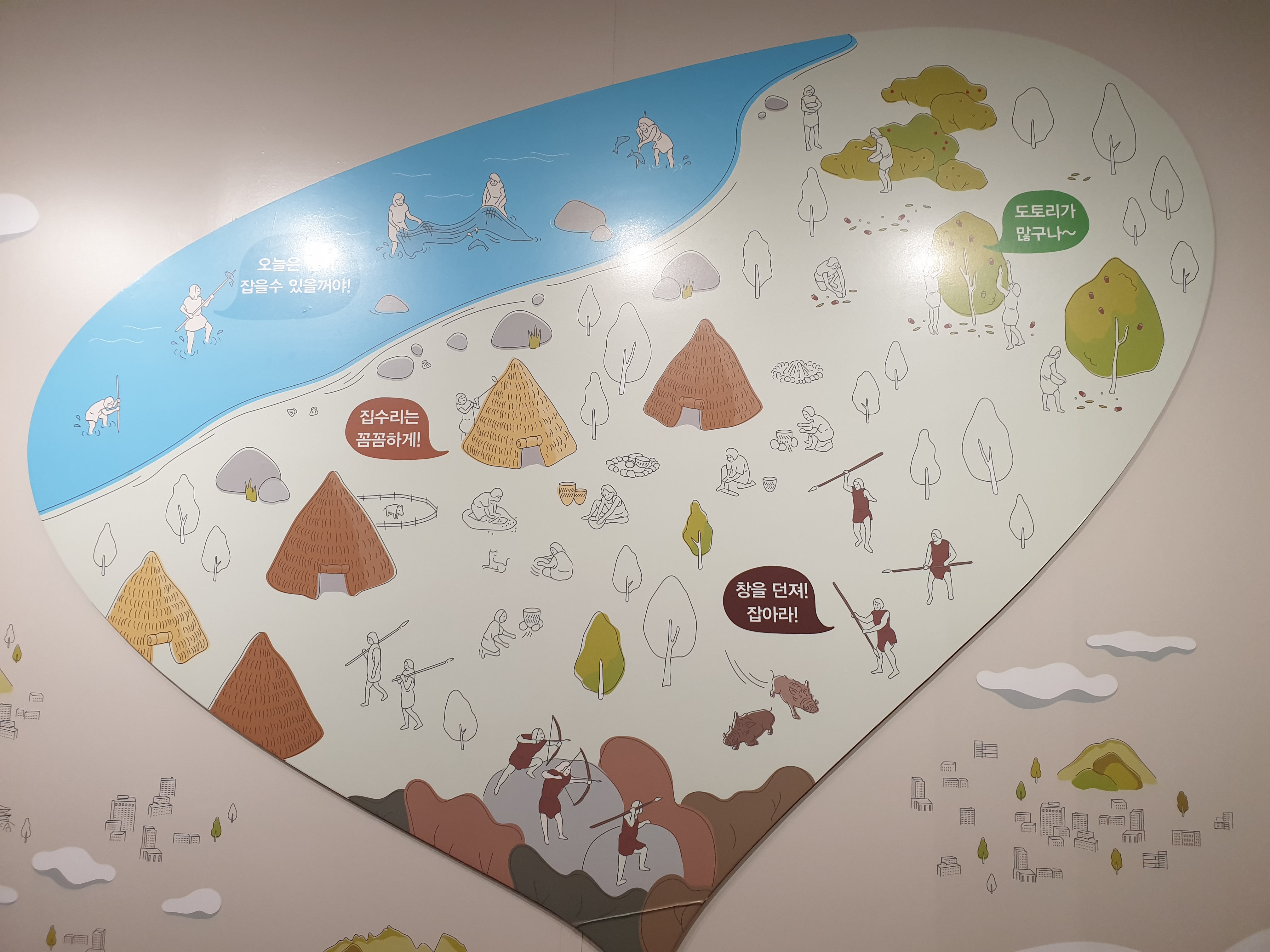 어두컴컴한 시간의 길을 통과하면 타임머신을 타고 신석기시대로 여행을 떠나게 됩니다. 신석기시대 유적지 집터와 움집을 볼 수 있고 생활했던 모습을 동상으로 만들어 놔서 아이들 역사 공부에 큰 도움이 될 것 같습니다.