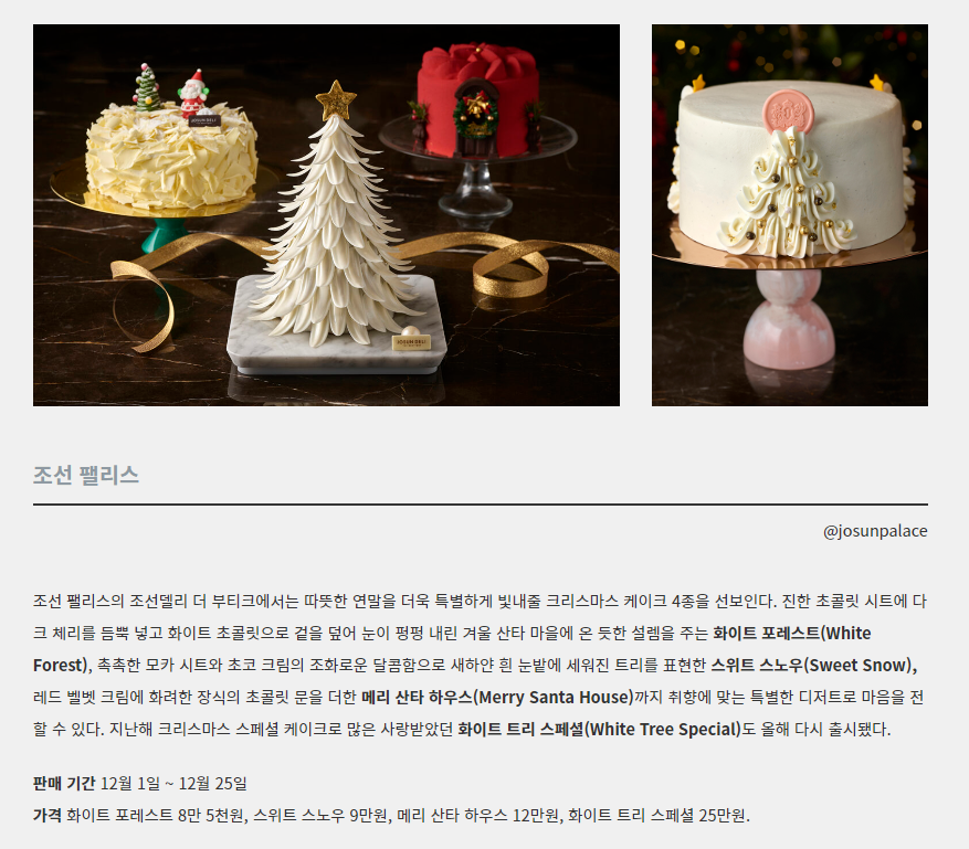 올해 크리스마스 케이크 정보를 시리즈 별로 살펴보겠습니다.