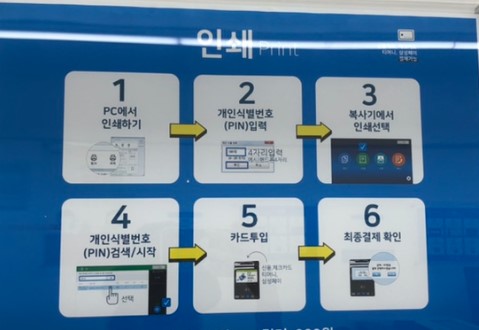 인쇄는 연결된 PC에서 문서를 불러내고 개인 식별 번호를 입력합니다. PIN번호는 임시 비밀번호라고 생각하면 되고 그다음은 복사 방법과 같습니다.