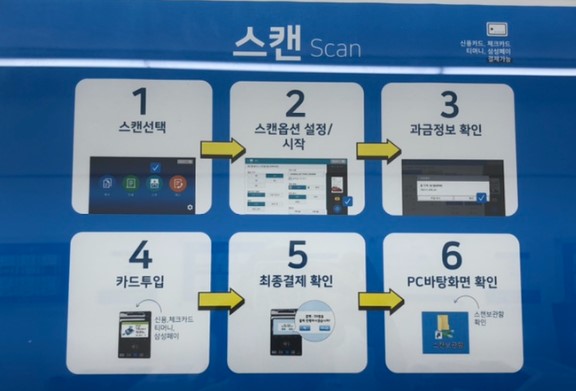 스캔을 선택하고 옵션을 설정/시작 버튼을 누르고 결제하고 PC 바탕 화면에 스캔이 되었는지 확인, 저장하면 됩니다.