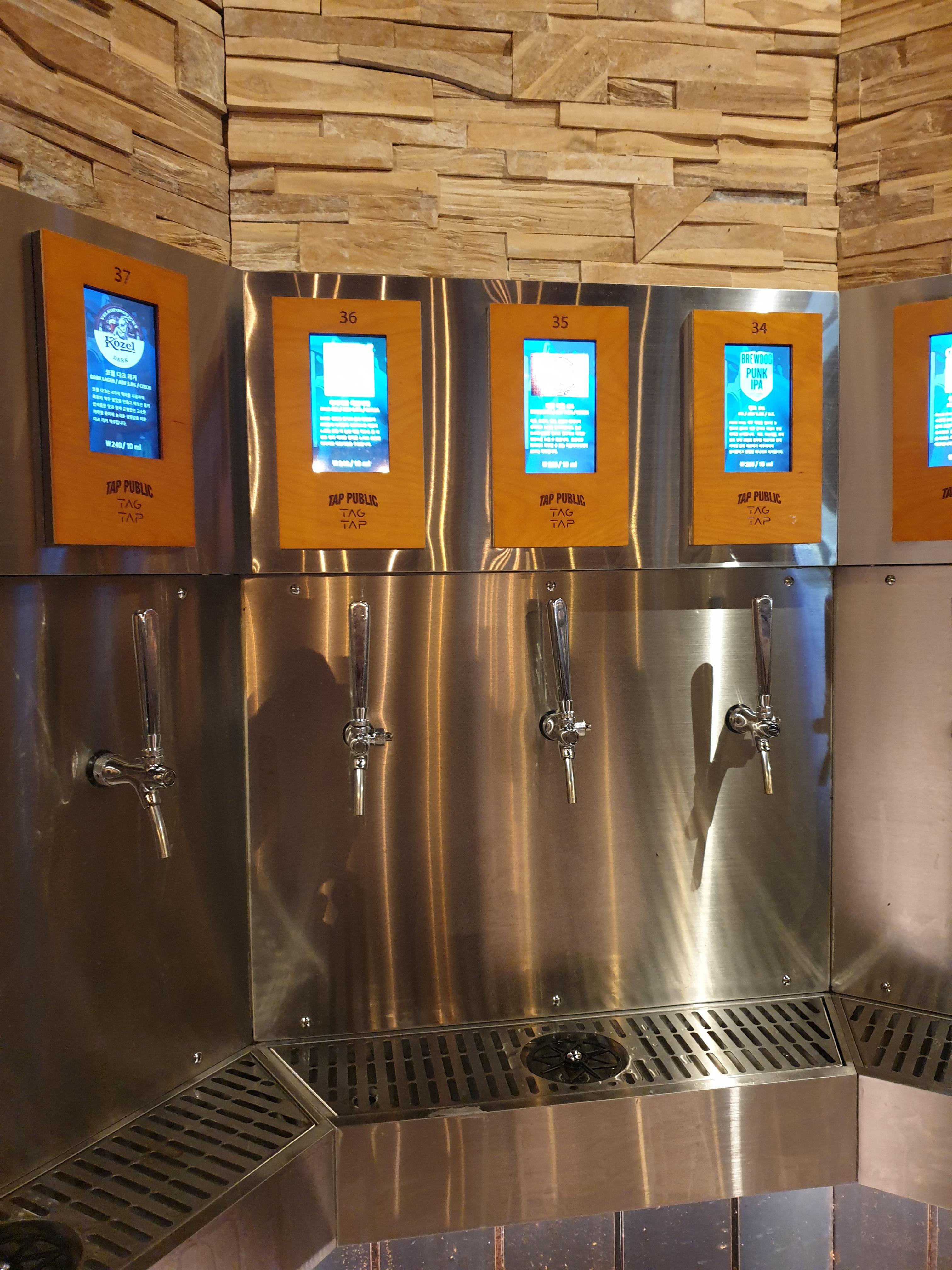 '탭 퍼블릭은 국내 최초 태그 탭 시스템을 개발하여 국내 최다(60여 종)의 신선한 수제 맥주를 원하는 종류와 양을 고객이 직접 조절하여 마실 수 있는 콘셉트입니다. 태그 탭 시스템은 RFID 팔찌를 각 맥주 정보가 제공되는 LCD 스크린에 태그 하여 맥주 탭을 작동하며 직접 따를 수 있으며 따른 양만큼 계산하는 시스템입니다. 바쁜 현대인에게 음식은 곧 힐링이며 즐거움이기에 냉동식품에 의지하는 기성 맥주집의 한계를 넘어 수제 맥주와 푸드 페어링이 되도록 연구 개발된 탭 퍼블릭만의 다양한 요리는 고객의 주문과 동시에 셰프에 의해 바로 조리되는 수제 요리를 추구하는 다이닝 펍 레스토랑입니다.'