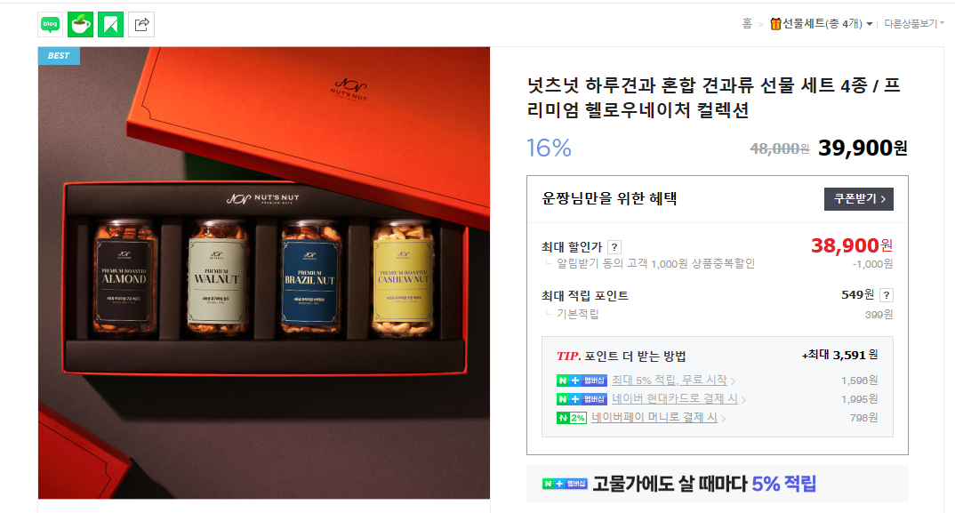 4. 넛츠넛 혼합 견과류 선물 세트 4종