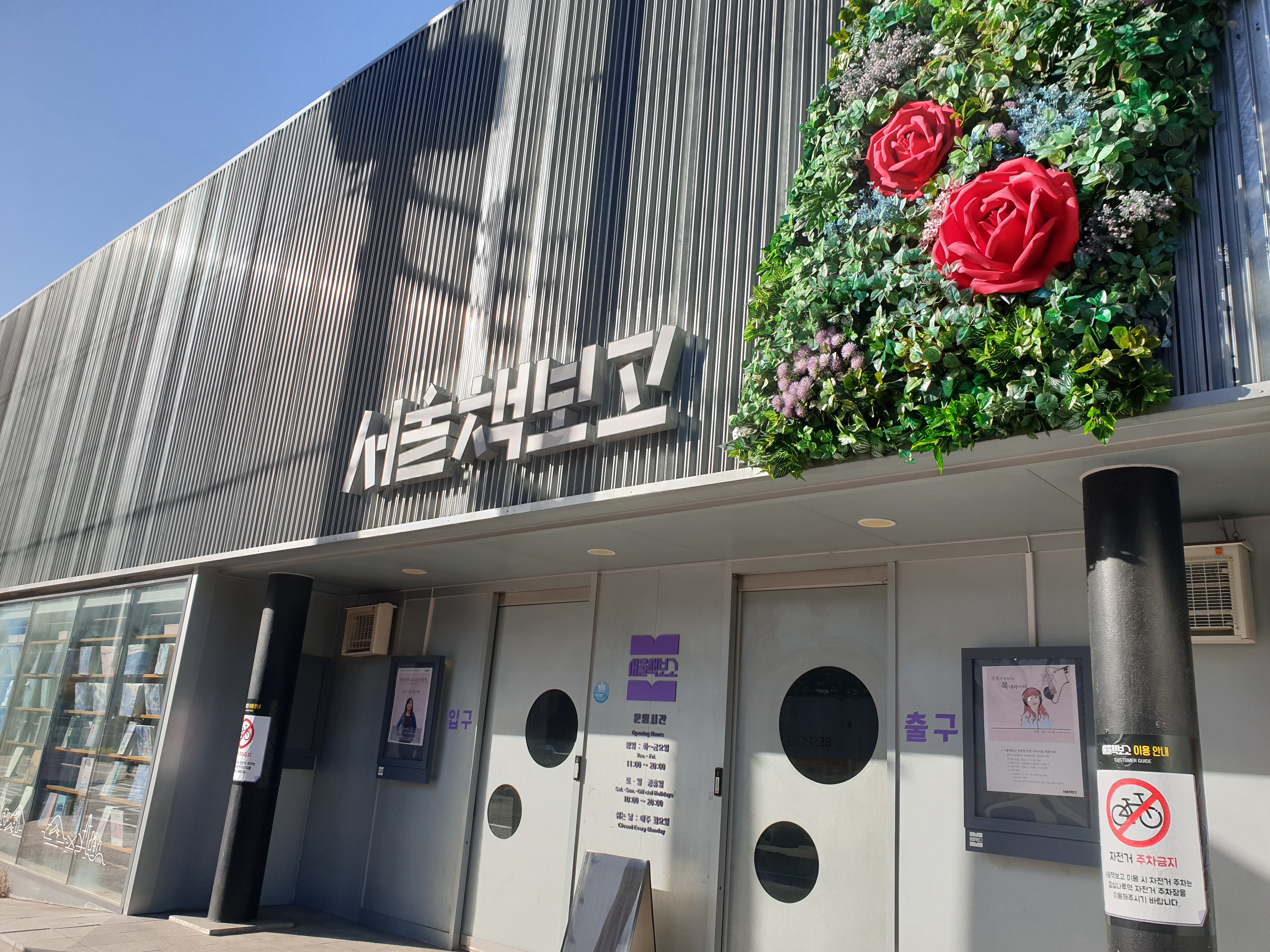 서울 책 보고 입구 모습이다. 잠실나루 역에서 내려 걸어서 5분 정도면 도착한다. 바로 옆에 신천 유수지 공영주차장도 있어 차를 가져와도 편하게 주차할 수 있다. 주차요금은 5분당 150원이다.